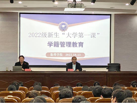 为进一步提高大学生安全防范意识,明晰学业规划方向,增强大学新生入学适应能力,10月13日晚,数理学院在希望大道校区土木馆报告厅开展2022级新生“大学第一课”之安全教育&学籍管理教育。学院邀请校保卫处处长张晓东和教务处副处长李爱国分别做安全教育和学籍管理教育的专题报告。学院党总支书记魏伟华主持,新生辅导员、全体2022级新生和2021级学生参加。