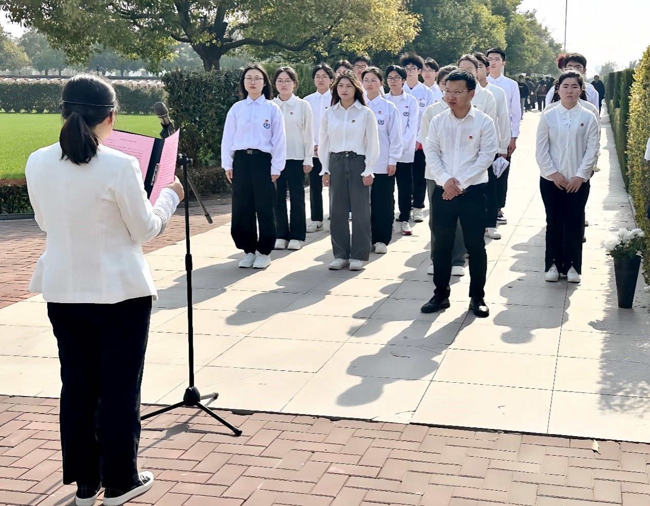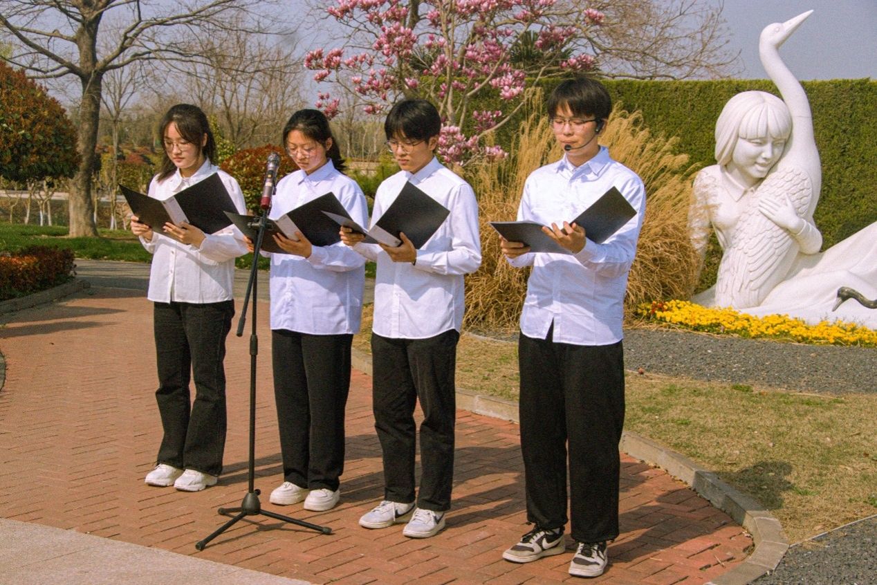 活动中,全体师生统一着装,排列整齐,庄严肃立,聆听陵园工作人员对徐秀娟烈士的生平事迹介绍,感悟“鹤魂精神”的磅礴力量;学生代表深情朗诵诗歌《一个真实的故事》,向徐秀娟烈士表达了浓浓的哀思之情;B统计231班班长张利军带领全体师生重温湿地保护志愿者誓词,铿锵有力的誓言表达着广大团员青年对徐秀娟烈士的深切缅怀和传承“鹤魂精神”的坚定决心;随后,全体师生依次走到徐秀娟纪念雕像前敬献鲜花并瞻仰烈士,深情缅怀为驯鹤事业而献出年轻生命的徐秀娟烈士。
