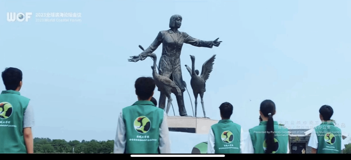 我校数理学院徐秀娟黄海湿地保护志愿者协会志愿者作为盐城青年大学生代表受邀参加了该形象片的拍摄。镜头中,协会志愿者们站在徐秀娟纪念雕像面前,庄严宣誓湿地保护志愿者誓词,誓做徐秀娟精神的传承者、弘扬者、践行者,为保护全球湿地生态贡献青春力量。