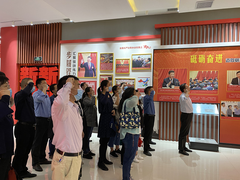 在讲解员的引导和讲解下,数理学院一行仔细观看了详实的事例、案例、图片、视频等图文并茂的资料,重温了党和国家领导人、革命先辈的光辉事迹。在警示教育区,一件件触目惊心的案例,一段段悔恨交加的独白,给大家带来了视觉和心灵的冲击和震撼。在宣誓区,全体党员重温了入党誓词,以坚定有力的誓言表达了不忘初心、牢记使命的坚定决心。学院领导班子成员还现场参加了“尚德昭廉教育测试”答题。