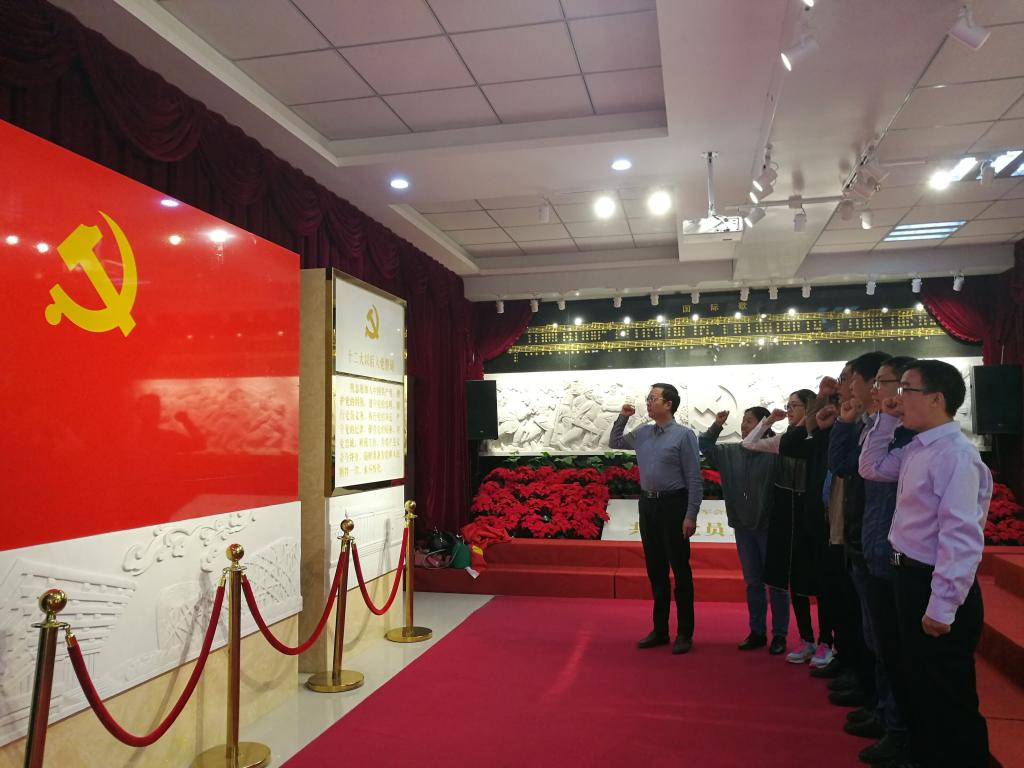 在白驹狮子口纪念馆省级共产党员宣誓教育基地,数理学院理论学习中心组全体党员集体面对鲜红的党旗,庄严宣誓,以坚定有力的誓言,表达不忘初心、牢记使命的信念。