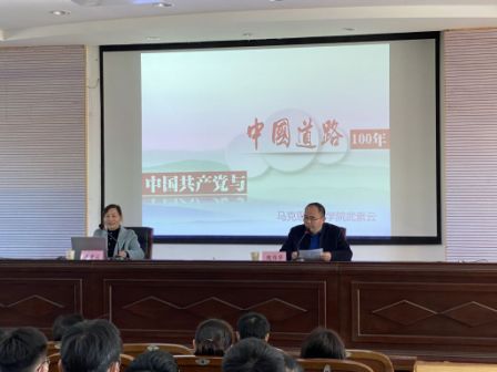 11月12日,在南校区土木馆报告厅,数理学院党总支邀请马克思主义学院武素云副教授做题为《中国共产党与中国道路100年》的党史学习教育专题讲座,学院理论学习中心组全体成员、教职工党员和2021级全体新生聆听了报告。报告会由学院党总支书记魏伟华主持。