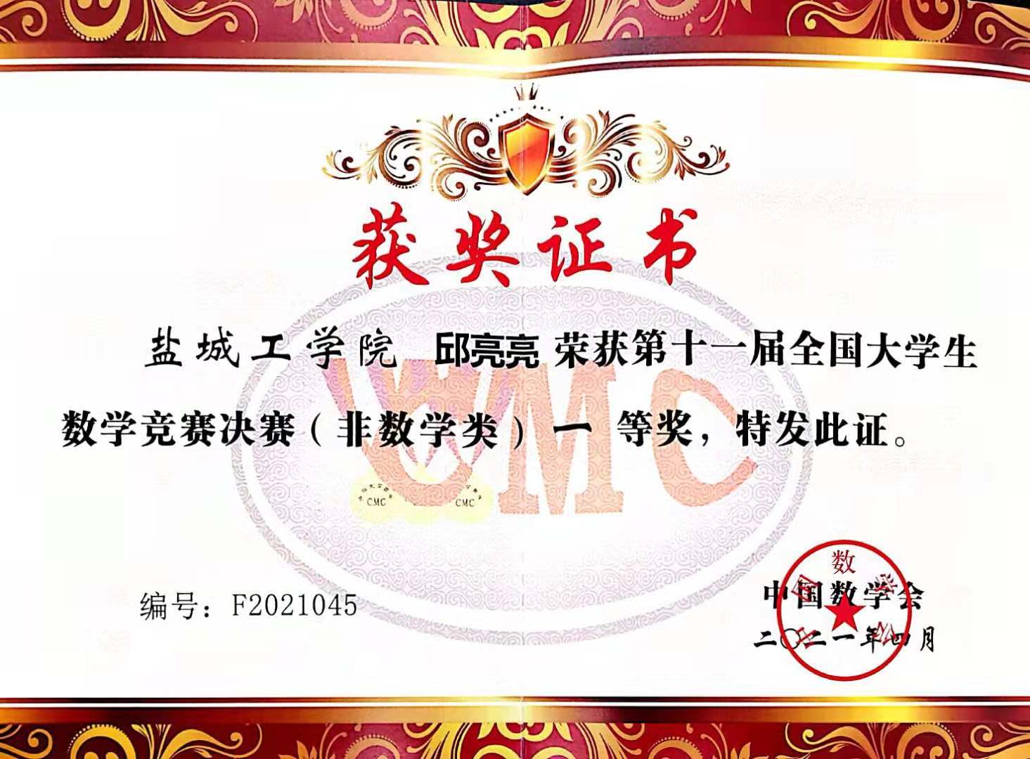 第十一届全国大学生数学竞赛决赛4月18日在武汉大学圆满落幕,我校邱亮亮和蔡旭昊同学参加了非数学专业组的决赛,均获得一等奖,取得我校参赛历史上的最好成绩。在非数学专业类获一等奖总数和武大、清华等国内名校同时并列第三,在江苏高校中位列第一。