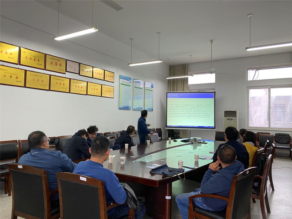 施敏加教授做了题为《有限域上具有非平凡系数的置换三项式和四项式》的学术报告。施敏加教授首先介绍了双DT码在编码理论中具有重要的研究价值。他重点阐述了如何用Dickson多项式显式地确定谱,并且推导出生成LCD码的条件,并利用一种特殊的级联过程,构造了扩展域上DT码的二元和三元LCD码的最优或准最优例子。