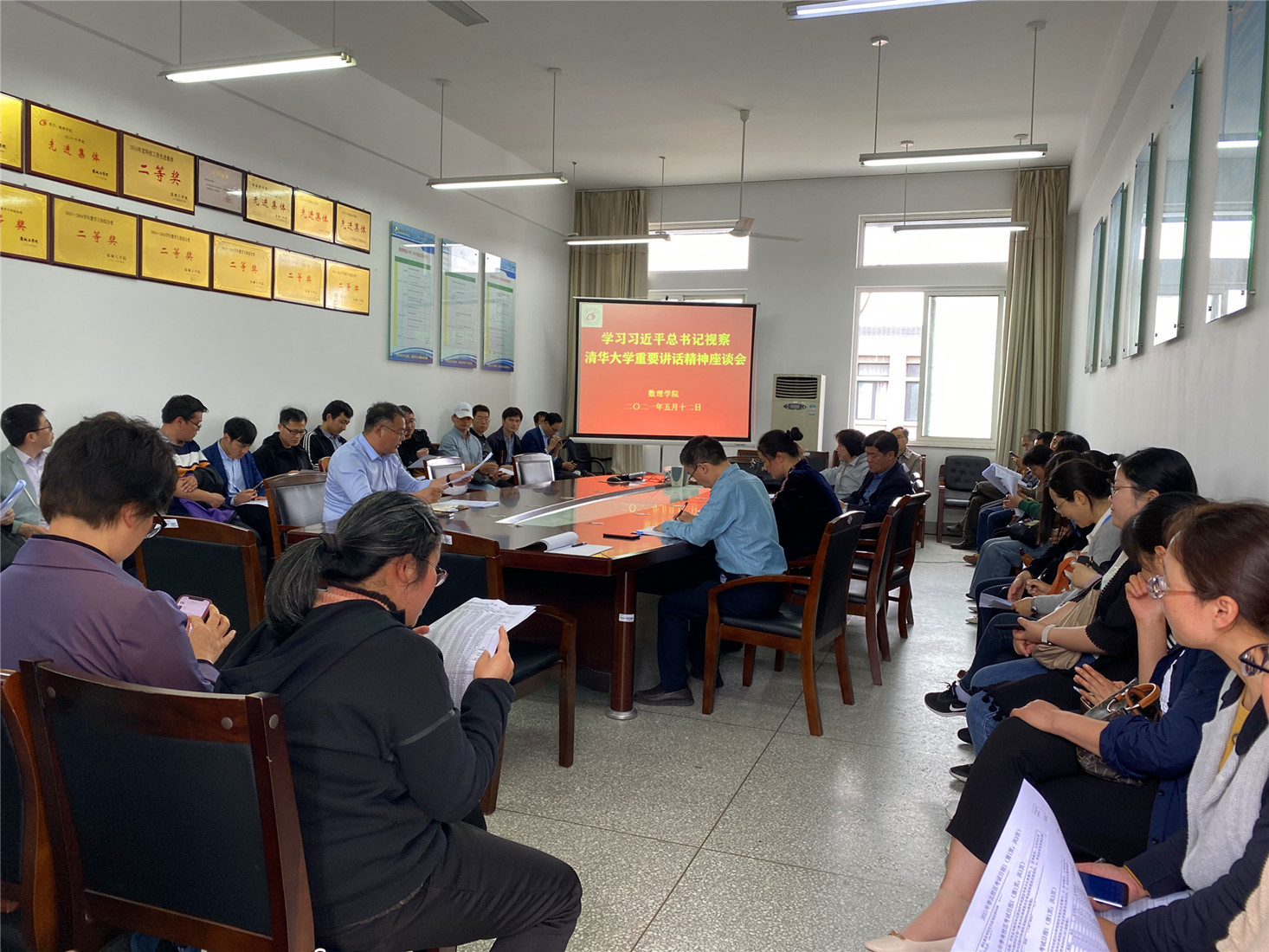 5月12日下午,数理学院组织学习习近平总书记视察清华大学重要讲话精神座谈会,认真传达讲话精神,研究贯彻落实举措。学院党总支临时负责人、副院长徐宁教授主持会议。