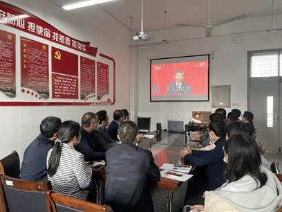 10月16日上午,在希望大道校区博学楼B503、B406、B407,数理学院党总支组织理论学习中心组全体成员、党员教师代表、2022级140名新生集中观看中国共产党第二十次全国代表大会开幕会。