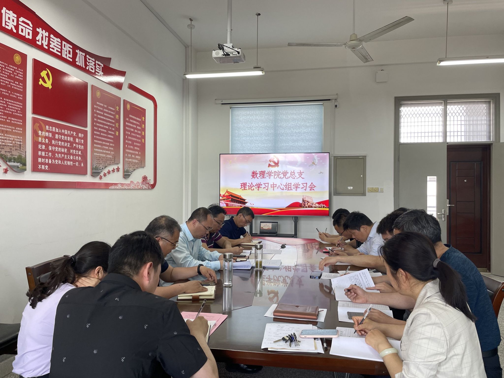 6月9日下午,在希望大道校区博学楼B503党员活动室,数理学院党总支理论学习中心组召开会议专题学习习近平总书记在中共中央政治局第五次集体学习时的重要讲话精神,学院党总支书记魏伟华主持,理论学习中心组全体成员参加。