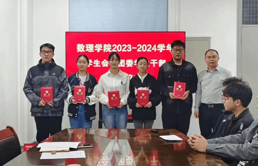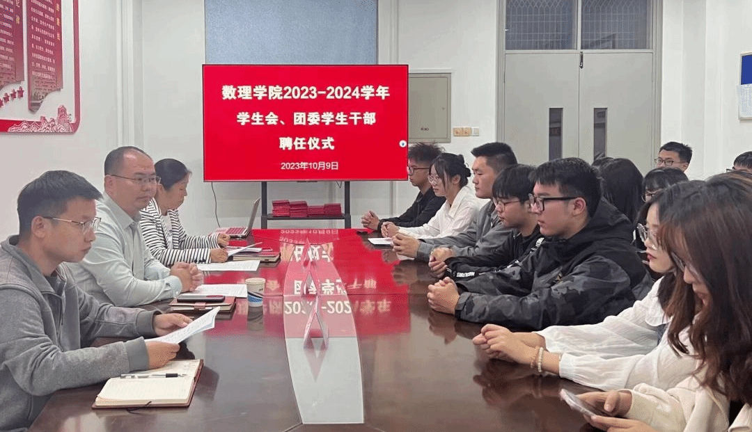 10月9日晚,数理学院在博学楼B503举行了第二届学生会、团委学生干部聘任仪式。学院党总支书记魏伟华、辅导员黄小钢及第二届全体学生会、团委学生干部参加了仪式,仪式由学院学工办主任兼分团委书记孙杰主持。