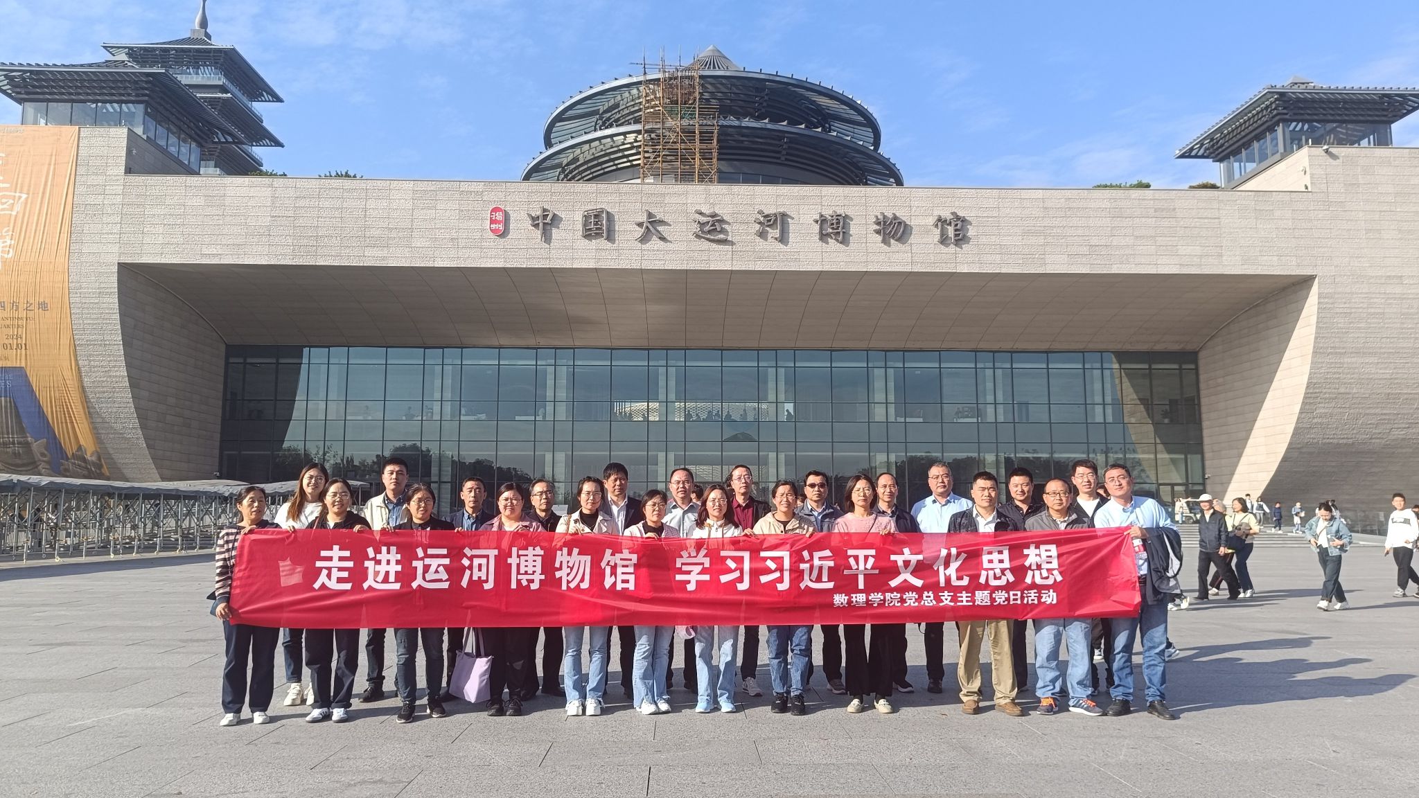 28日下午,数理学院党总支书记魏伟华带领大家走进中国大运河博物馆,近距离感受大运河的文化底蕴和魅力。大运河博物馆收藏自春秋至当代反映运河主题的古籍文献、书画、碑刻、陶瓷器、金属器、杂项等各类文物展品1万多件/套。从汴河的老河道剖面到百米运河史诗图卷,从江南实景古街古巷到LED屏围成的四季天幕,大家身临其境地了解中国大运河历史变迁及其对古代政治、经济和文化的重要影响,深刻领会了中国大运河在文化融合、河工技术、通航功能、漕运管理、交通运输等方面的中国智慧和大运河为人民带来的美好生活。