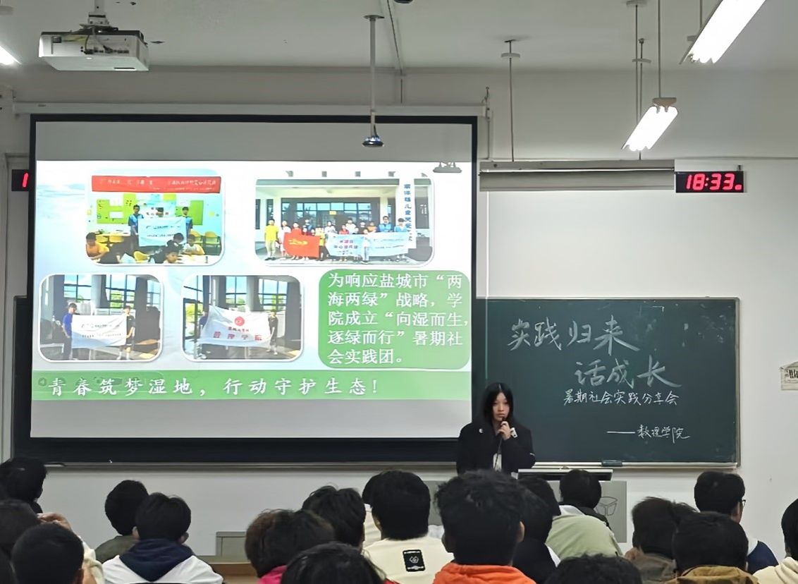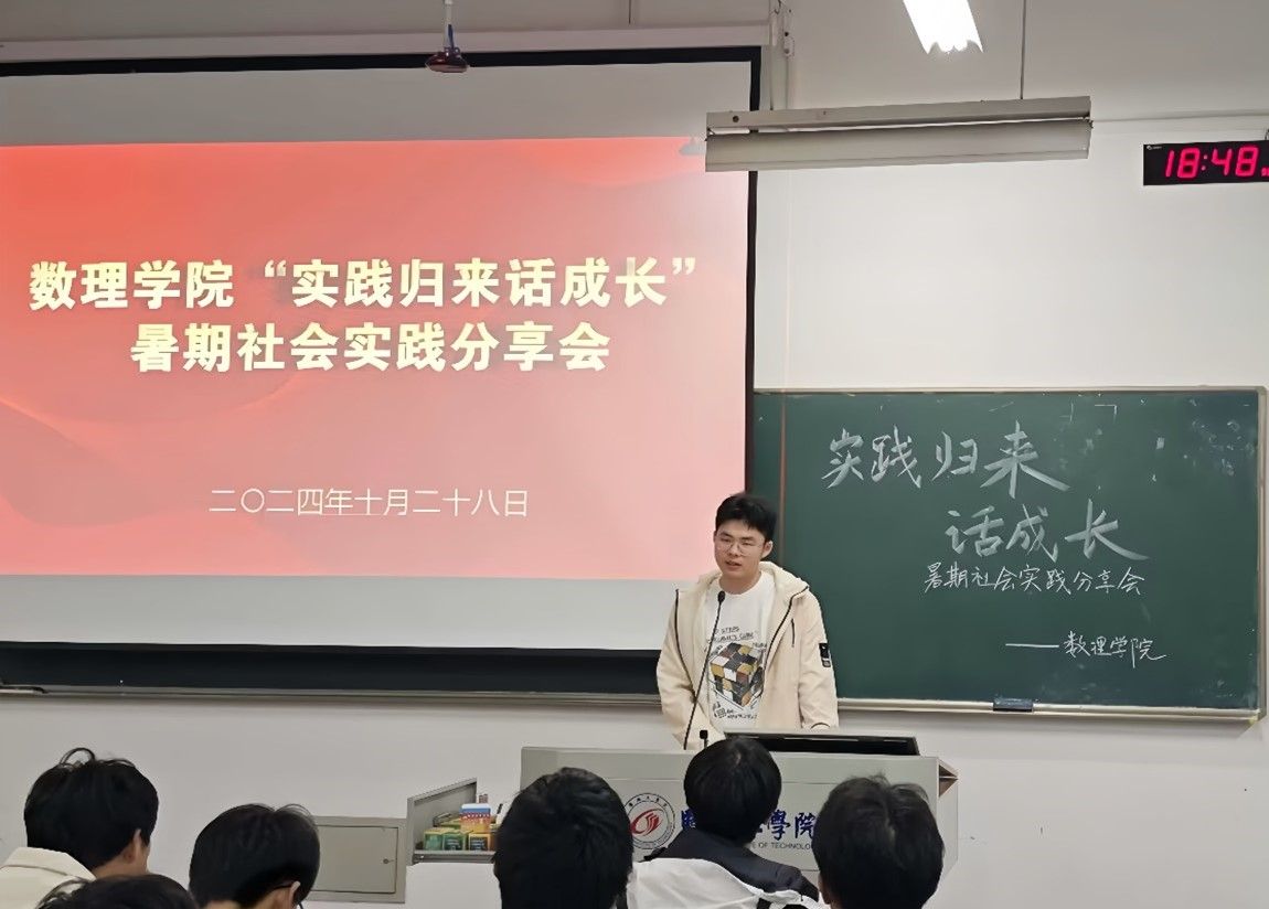 为深入学习贯彻习近平总书记关于青年工作和教育的重要论述,引导和帮助广大青年学生在社会课堂中“受教育、长才干、做贡献”,10月28日晚,数理学院依托“一站式”学生社区在博学楼B楼405教室举办 “实践归来话成长,争做时代好青年”暑期社会实践分享会。学院学生会、团委全体学生干部,各实践团队成员及2024级学生代表参加。