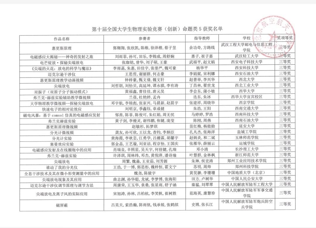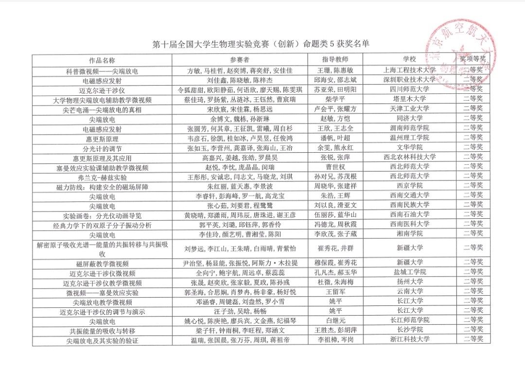 全国大学生物理实验竞赛是进入全国普通高校大学生竞赛排行榜的唯一物理类竞赛,在大学生课外科技竞赛领域具有广泛的影响力。本届大赛由高等学校国家级实验教学示范中心联席会物理学科组、教育部高等学校大学物理课程教学指导委员会、教育部高等学校物理学类专业教学指导委员会和中国物理学会物理教学委员会指导,全国大学生物理实验竞赛组委会和全国高等学校实验物理教学研究会主办。