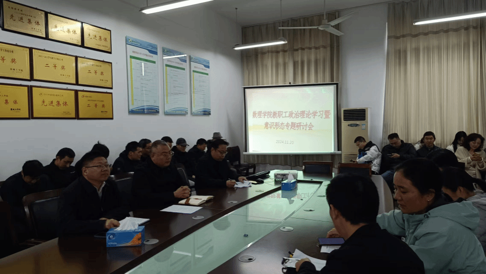 11月20日下午,数理学院在博学楼512会议室召开了政治理论学习会议以及意识形态专题学习会,会议由院长徐宁主持,全体教职工参会。