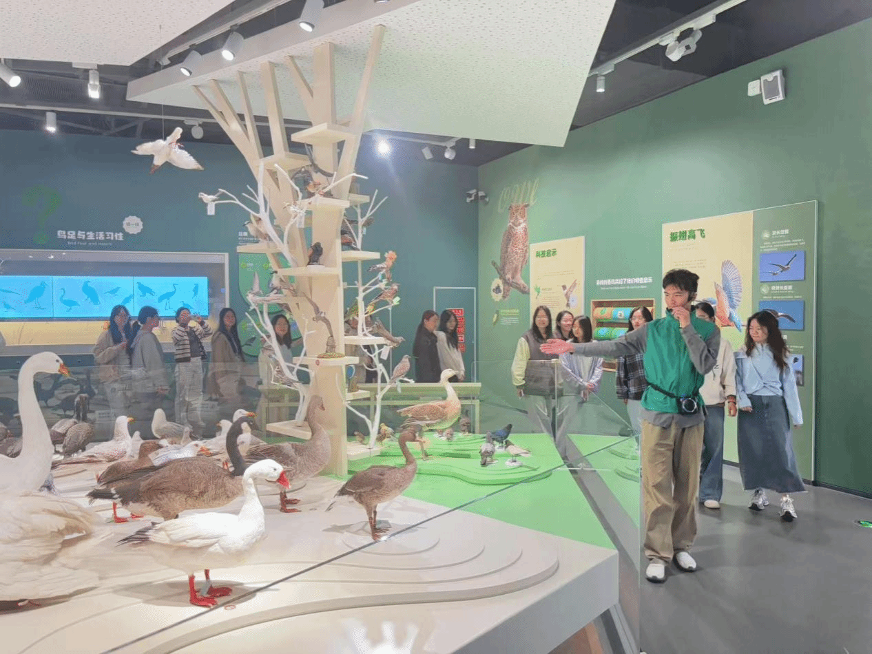 4月27日,为进一步增强社会公众爱鸟护鸟意识,传播生态文明理念,数理学院组织学生代表在黄海湿地博物馆开展鸟类科普活动。活动中,学生代表向往来游客详细介绍黄海湿地作为全球候鸟迁徙重要中转站的生态地位以及湿地的形成过程、生态功能等。通过图文展示、珍稀鸟类标本及互动影像资等,生动讲解丹顶鹤、勺嘴鹬等珍稀鸟类在盐城湿地栖息繁衍的故事,引导广大游客深刻认识湿地保护在维护生物多样性方面的关键作用。