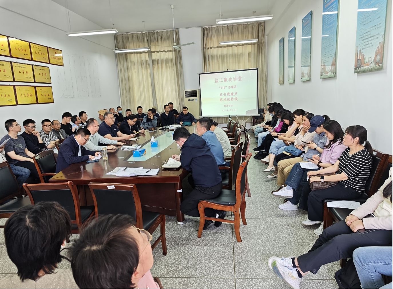 为积极响应学校“510”思廉月活动号召,深入推进廉洁文化建设,强化党员干部和教职工的廉洁意识,盐城工学院数理学院于4月30日下午在博学楼B512成功举办了 “家书载廉声,家风筑防线” 廉政讲堂活动。此次活动由数理学院党总支副书记、纪检委员许众威主持,全体教职工参与。