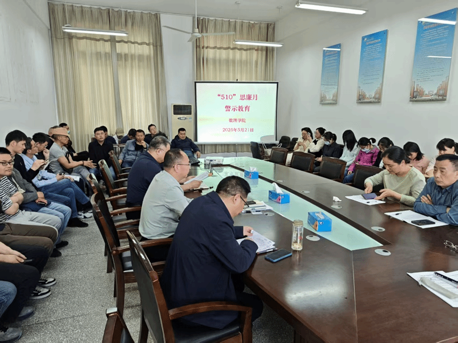 为扎实推进校园廉洁文化建设,强化教职工廉洁自律意识,5月21日下午,数理学院于博学楼B512会议室,组织开展了“510”思廉月警示教育活动。会议由学院党总支书记魏伟华主持,全体教职工共同参与。