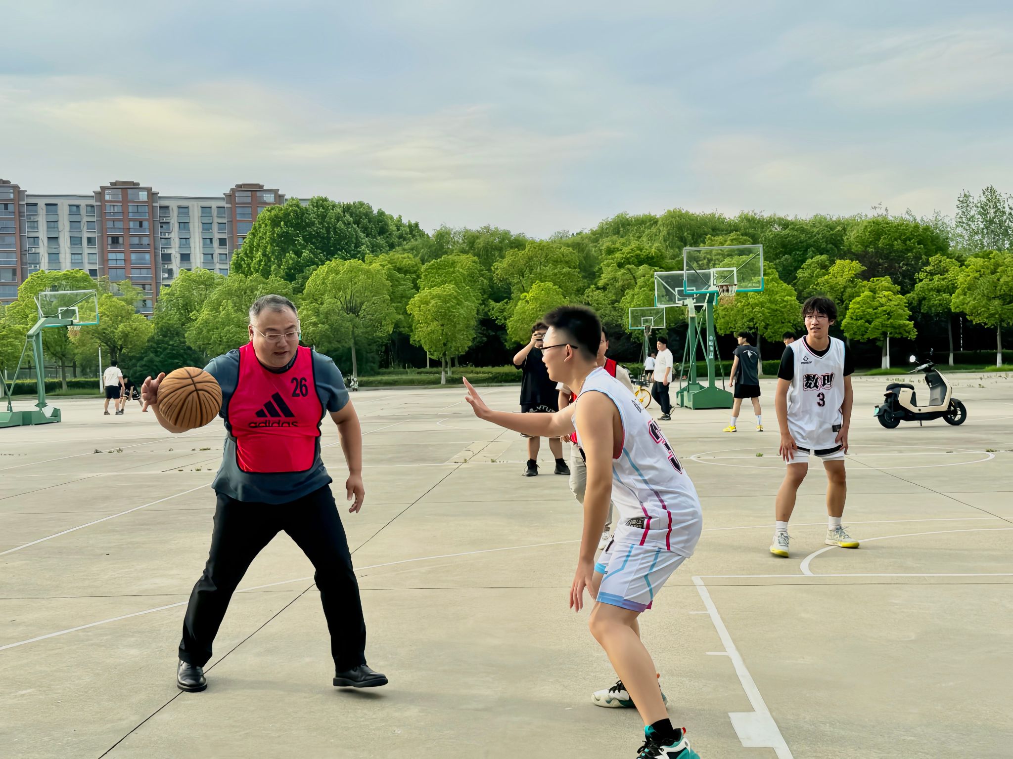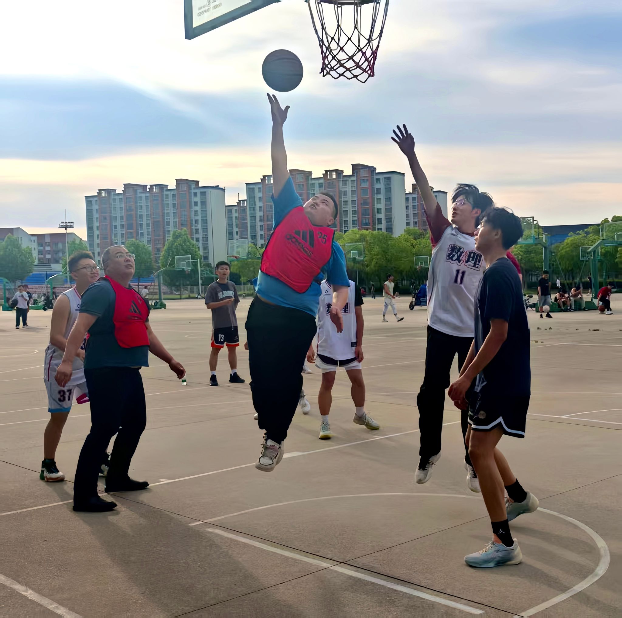 为欢送即将踏上人生新征程的2025届毕业生,营造温馨、热烈的毕业季氛围,6月11日下午,数理学院在希望大道校区篮球场特举办“青春不散场 师生情长传”欢送毕业生师生篮球赛。学院党总支书记魏伟华、院长徐宁、学工办主任孙杰、团委副书记陈亚雷、专业教师代表及毕业班学生参加。