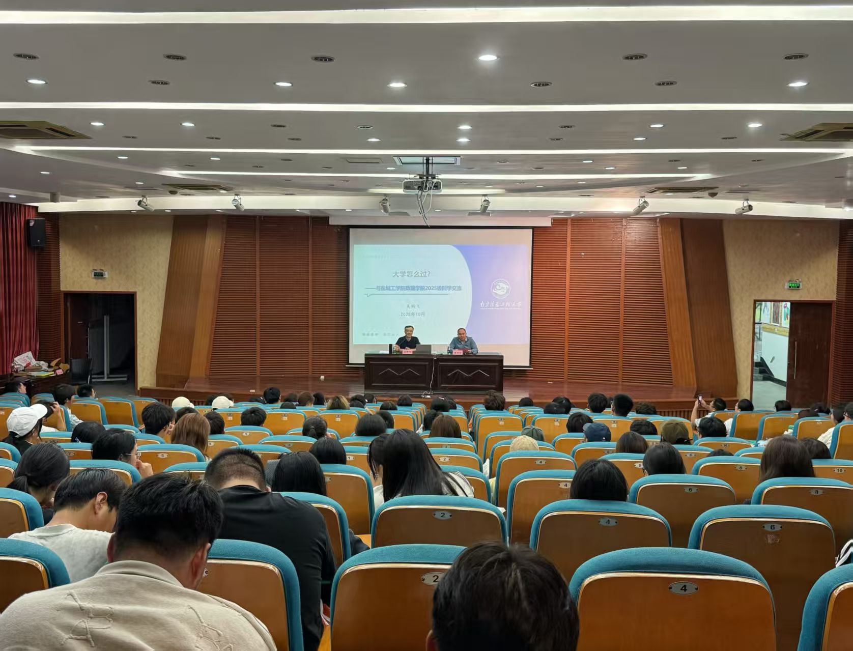 吴鹏飞以“大学怎么过”为主题,从“大学很轻松吗?”、“大学该怎么做?”、“盐工数理学院的学生该怎么做?”等方面展开报告。他结合具体案例,介绍了新生进入大学后常见的认知误区,强调了专业学习的重要性。他对全体同学提出了五点期望:一是要有目标和规划,并为之不懈努力;二是要学好专业知识,做好学业规划;三是积极担任学生干部,提升综合能力;四是追求思想进步,积极向党组织靠拢;五是树立正确价值观,保持身心健康。他鼓励数理学院的学生们结合学校培养定位,尽早确定自己未来发展方向,培养自己的创新思维,以积极向上的态度迎接大学生活。