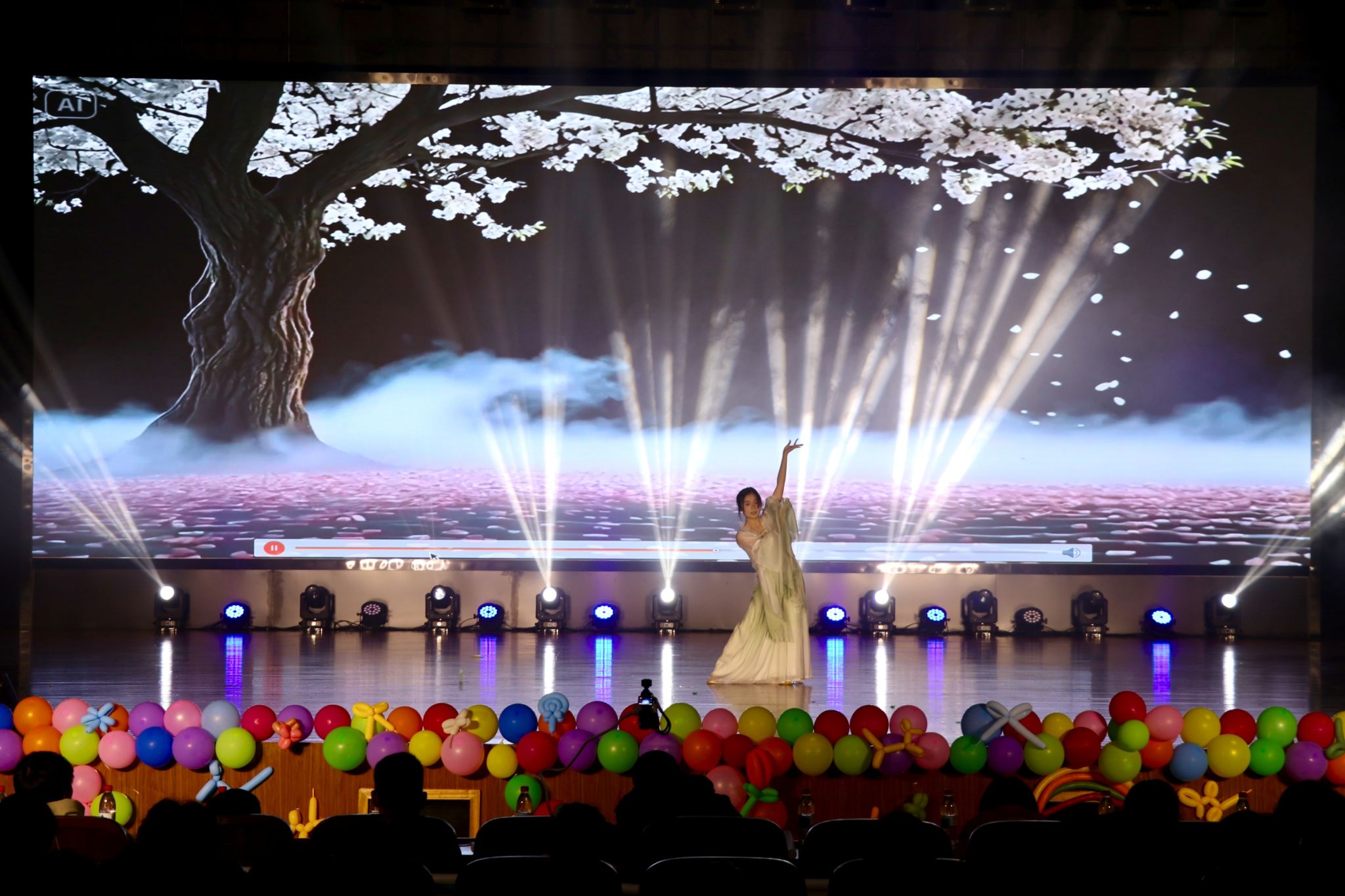 本次晚会以“智启未来”“逐梦前行”“践行担当”为核心篇章,精心设计舞蹈、歌曲、心理剧、朗诵、小品等多元节目形式,既有对青春成长的思考,又融入家国情怀与精神传承,为现场师生呈现了一场主题鲜明、内容丰富的文艺盛宴。