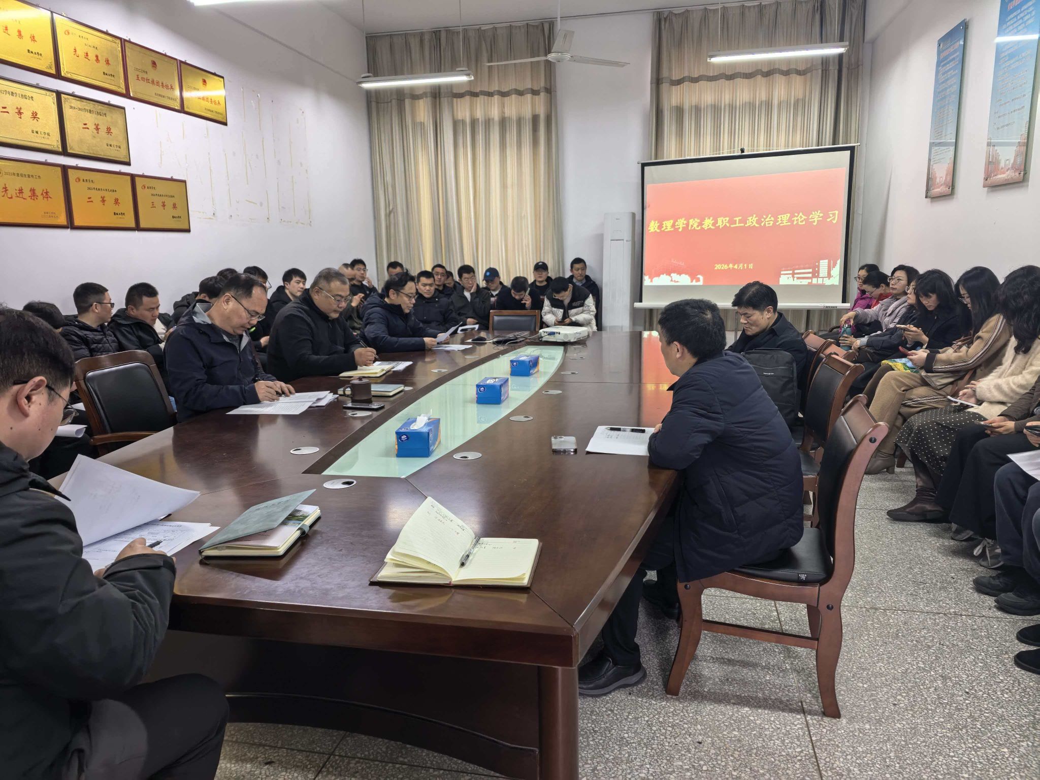 4月1日下午,数理学院在博学楼B512会议室召开2026年春学期第三次教职工政治理论学习会。会议由学院党总支书记魏伟华主持,全体教职工参加。
