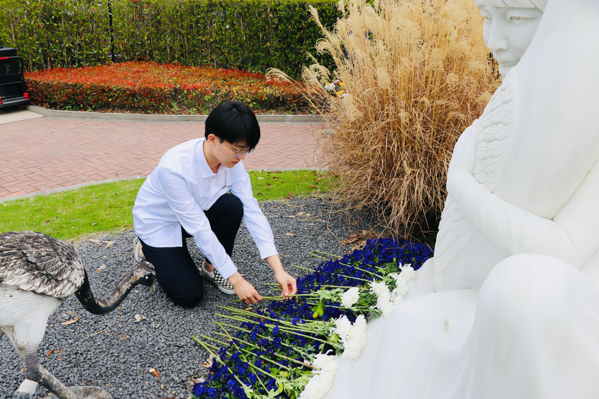 活动伊始,全体志愿者身着统一素装,整齐列队、神情肃穆、哀思满怀。在学生代表张语萱的郑重宣布下,祭扫活动正式拉开帷幕,静谧的墓区里,每一份敬意都显得格外真挚,每一份追思都凝聚着深切缅怀。