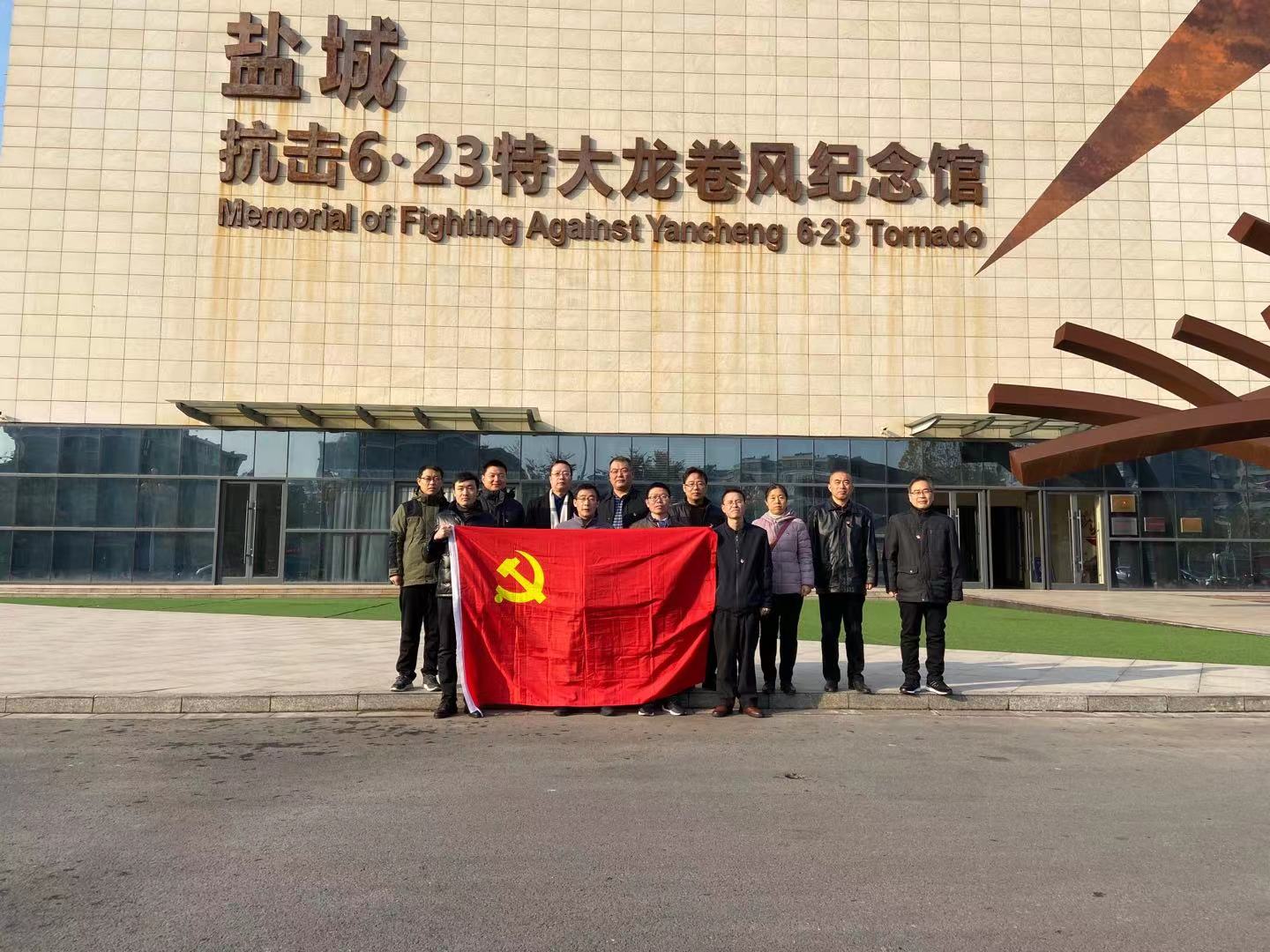 在本次活动中,支部全体党员也参观了阜宁县抗击6.23特大龙卷风纪念馆,体味“风雨无情人有情,一方有难八方支援”社会主义大家庭的温度。