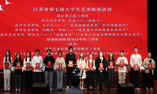 我院郭中伟、陆怡蕾同学获江苏省第七届大学生艺术展演活动书法篆刻类三等奖(右一、左一)